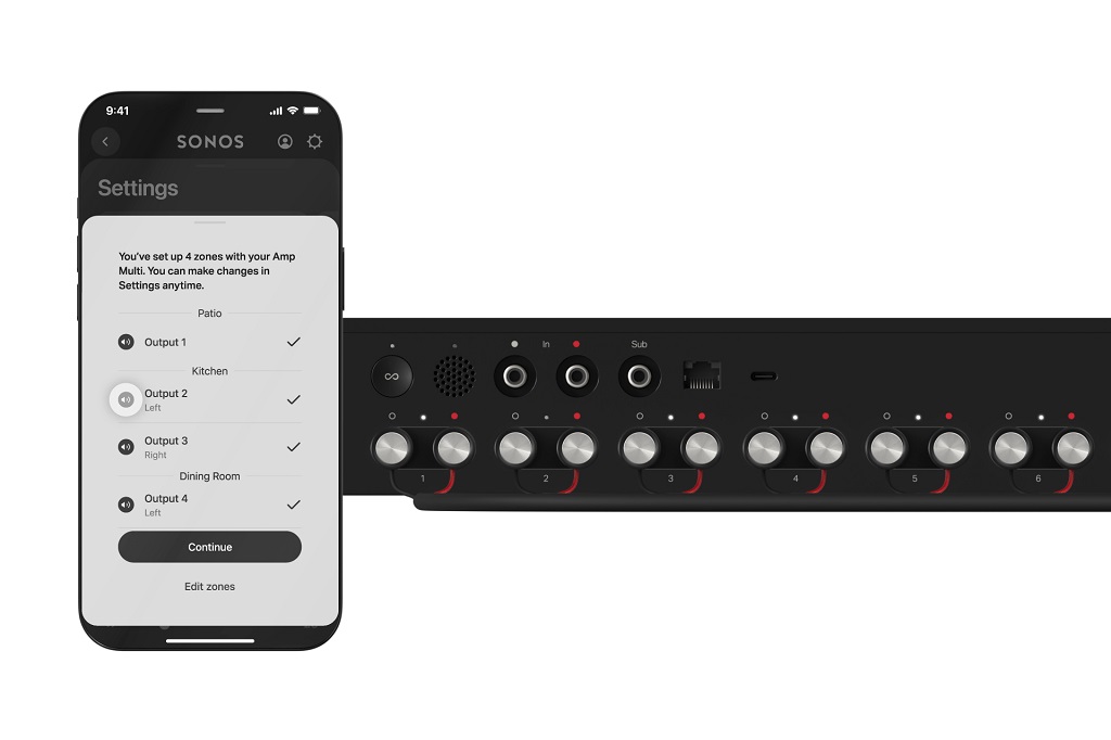 - Capacitateflexibilă multi-zonă: Amp Multi oferă opt ieșiri amplificate de 125 W fiecare la 8 ohmi, permițând alimentarea a până la 24 de difuzoare Sonos Architectural (3 pe canal). Integratorii pot configura ieșirile în orice combinație, în cadrul a până la patru zone independente, și pot instala mai multe unități Amp Multi pentru proiecte de amploare mai